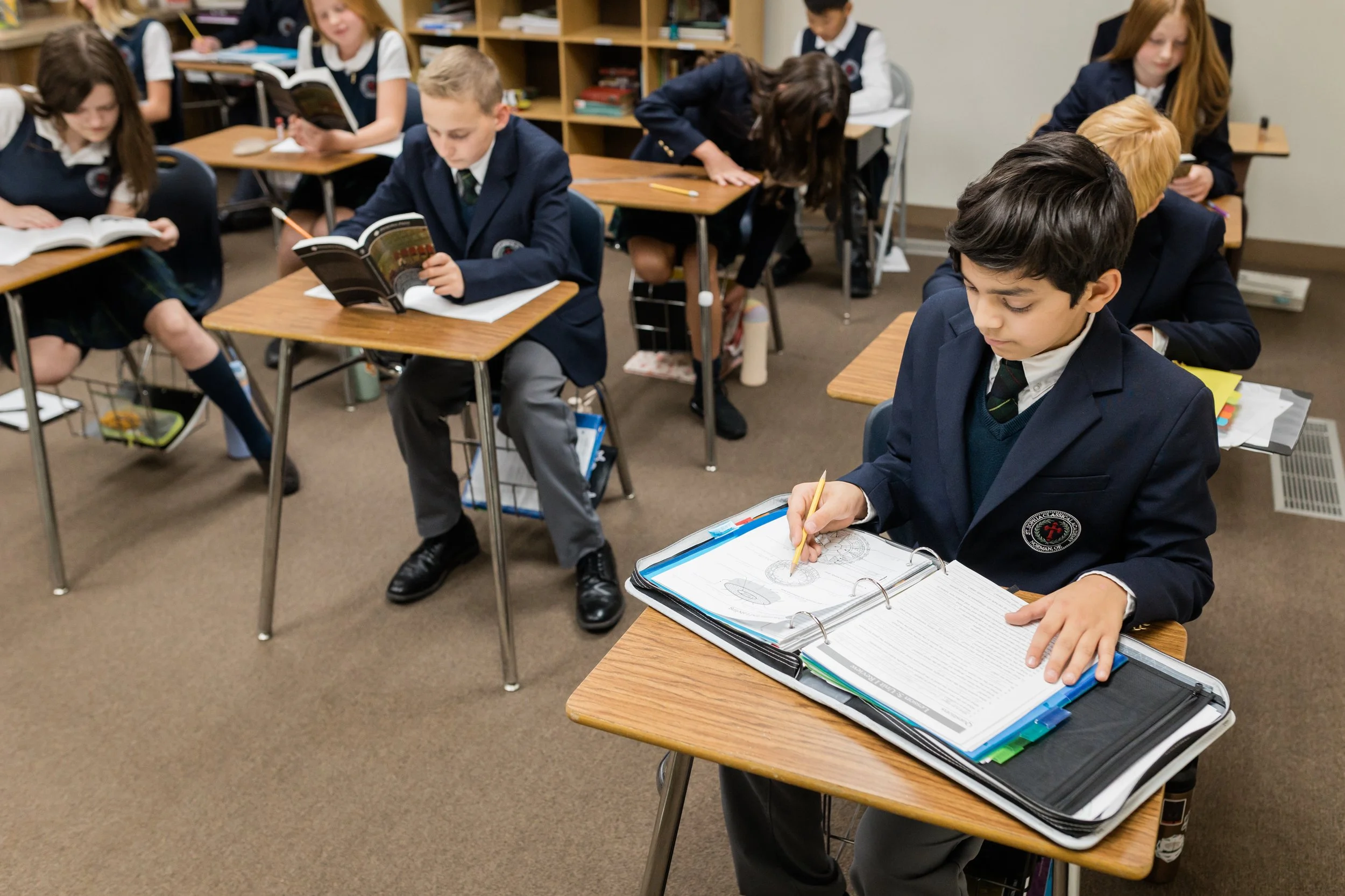 In traditional classrooms, students are gently led by an experienced, loving teacher into greater and deeper knowledge. In upper grades, students engage in passionate discussion and debate with their peers guided by a master teacher. Teachers not only instruct students but guide them in learning to live their Christian faith by example.