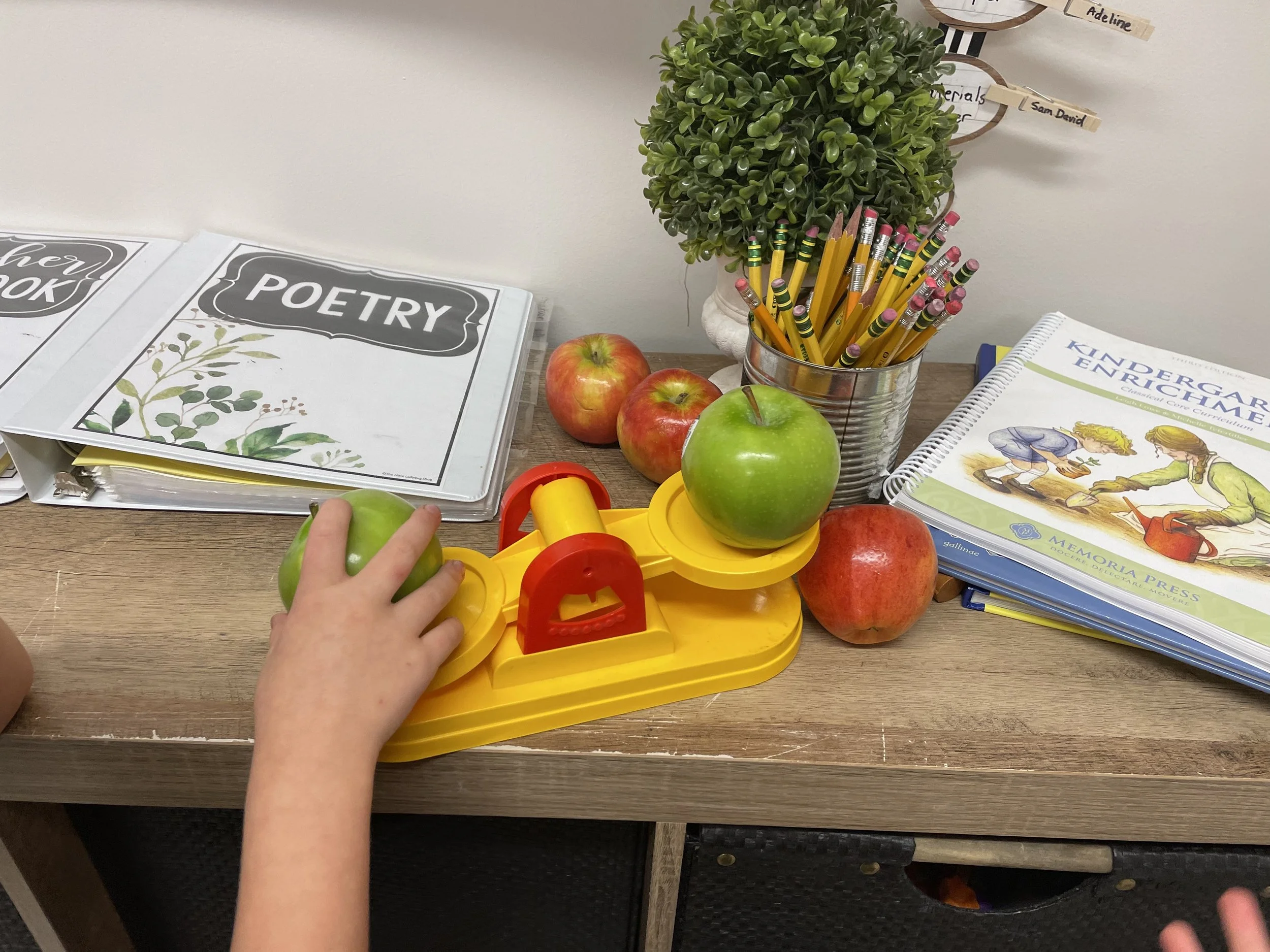 Once in the classroom our students begin with calendar time, and quickly move to their first phonics lesson while they are still fresh. St. Sophia has a thorough, rigorous, and systematic classical phonics program that prepares students to excel in reading and writing. Our kindergarteners then work on their math lessons. Seated work is broken up through out the day with breaks, and changing subjects to keep students engaged.